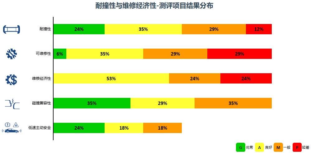 耐撞性与维修经济性:测评显示,在此分指数中获得优秀与良好的车型合计占比47%。车辆的碰撞兼容性表现相对较好,但可维修性与维修经济性仍是多数车型需要持续优化的环节,反映了在控制用户售后成本方面存在普遍提升空间。